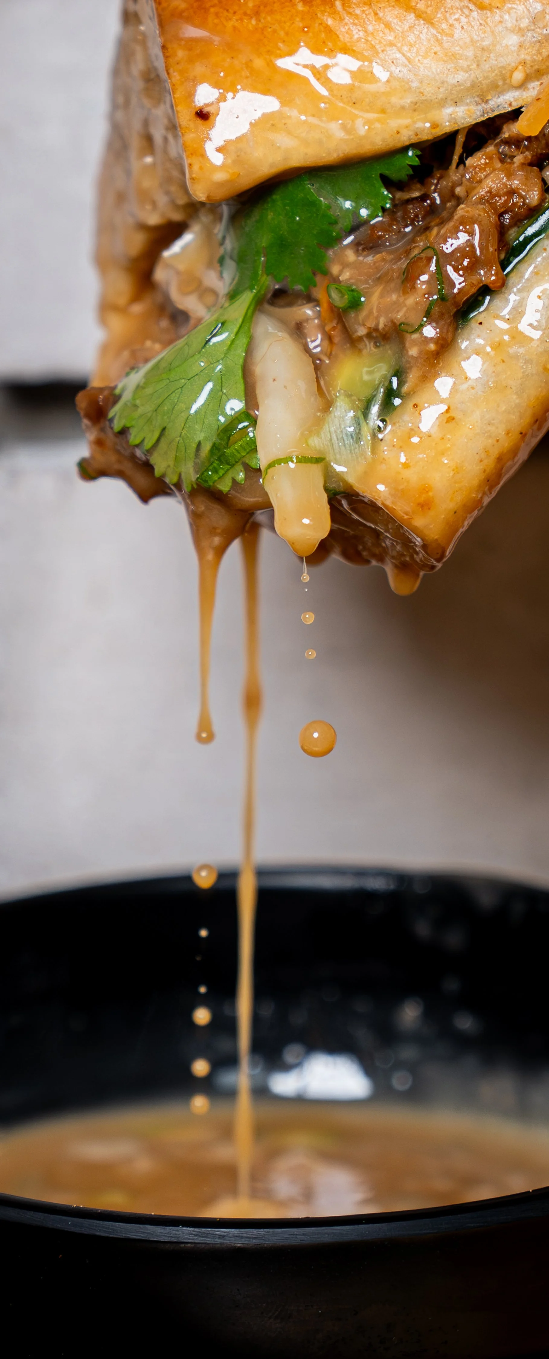Our Bánh mìs celebrate our chef, Nam’s Vietnamese heritage. Enjoy the crispy baguette sandwich as it is, or add extra Tonkotsu dip for a savory Japanese twist.